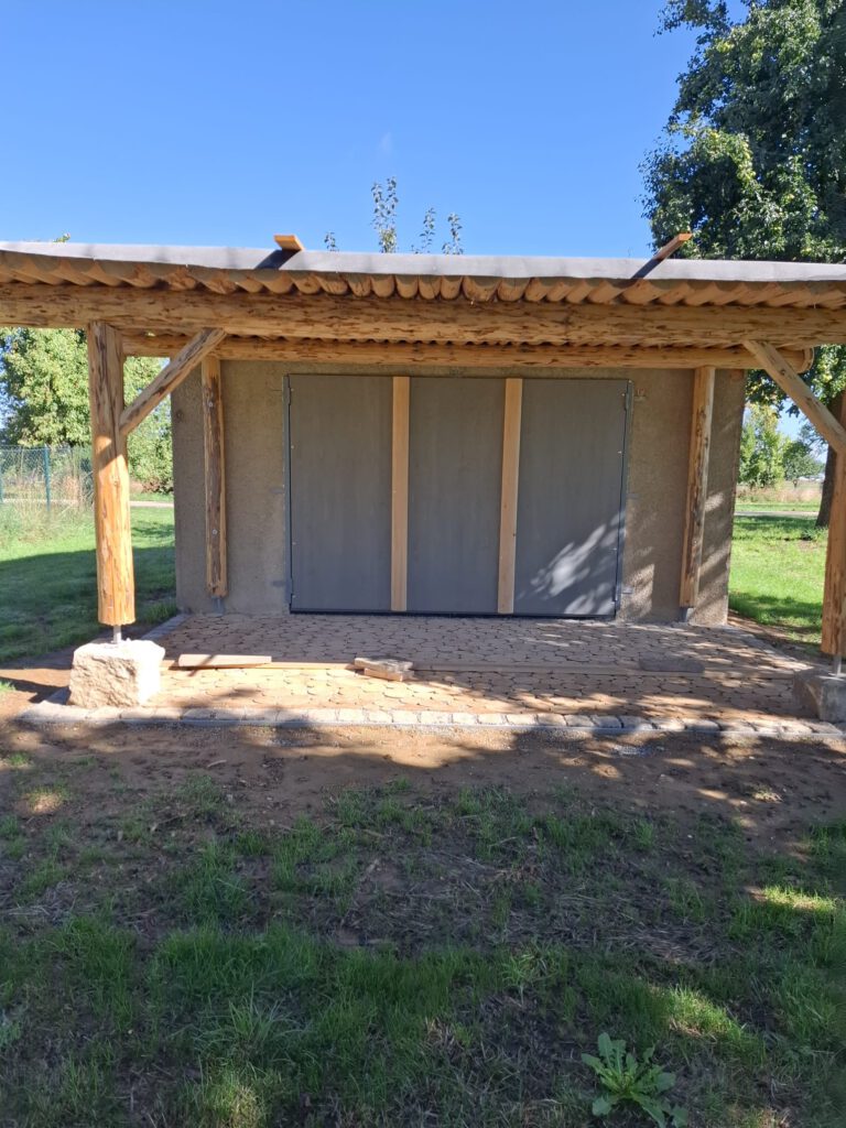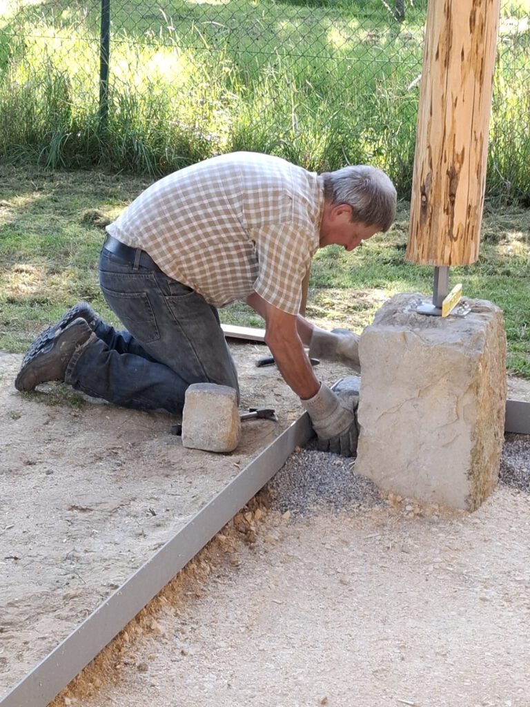 Sa., 19.04.2025 - Dach, Inhalt erneuert, Infotafeln an Wildbienenhäusle angebracht, Sitzfläche der Ruhebank erneuert am "Schönen Bühl", gegenüber der Jubi-Eiche 800 Jahre Altheim